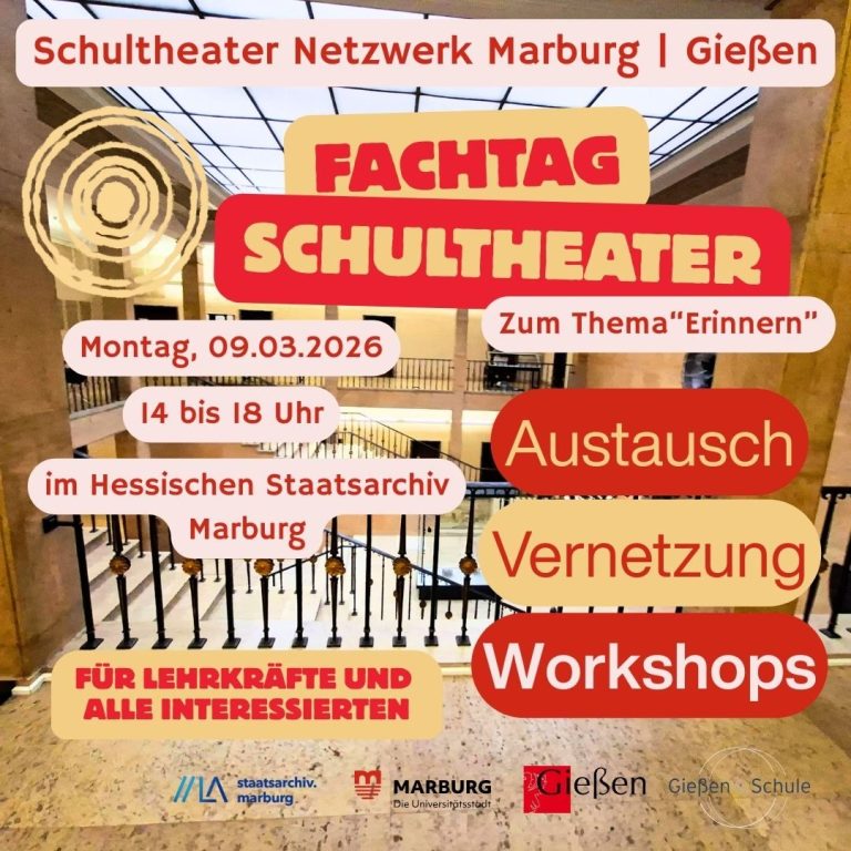Das Schultheater Netzwerk Marburg | Gießen ist eine seit Mai 2023 bestehende Kooperation zwischen den Städten Marburg und Gießen - in Kooperation mit dem Hessischen Ministerium für Kultus, Bildung und Chancen.